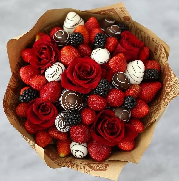 Ягодный букет «Василиса» – отличная идея для подарка любимого человека на день рождения или в любой другой значимый день. Удачное сочетание клубники, ежевики, сладостей и свежих роз никого не оставит равнодушным. Букет собирается строго в день доставки и только из свежих спелых ягод и цветов. При этом мы гарантируем полное сходство оригинала с фотографией на сайте. Заказать букет можно по телефону или онлайн. По предварительной договорённости к букету возможно приложить любой подарок, предоставленный вами. Цена композиции – доступная. При условии заказа на сумму более 4000 руб. доставка по Москве бесплатная. Купить и оплатить съедобный букет для любимой можно за наличные или по карте.