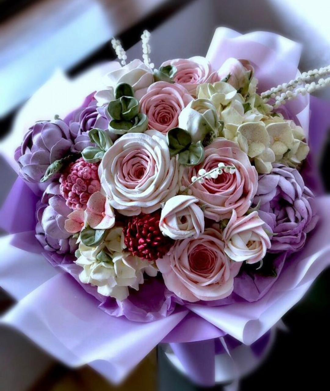 Букеты цветов из зефира, это ручная работа, а не фабричное производство. Поэтому 100% повторение образца невозможно. Но Вы можете быть уверены, что Ваш букет всегда будет эффектным, красивым, наивкуснейшим и гармоничным.
