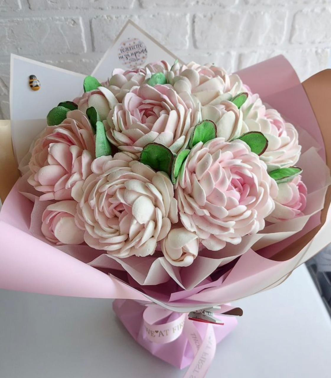 Упаковка: зефирный букет упаковывается в специальную защитную пленку и отправляется к получателю в коробке переноске.